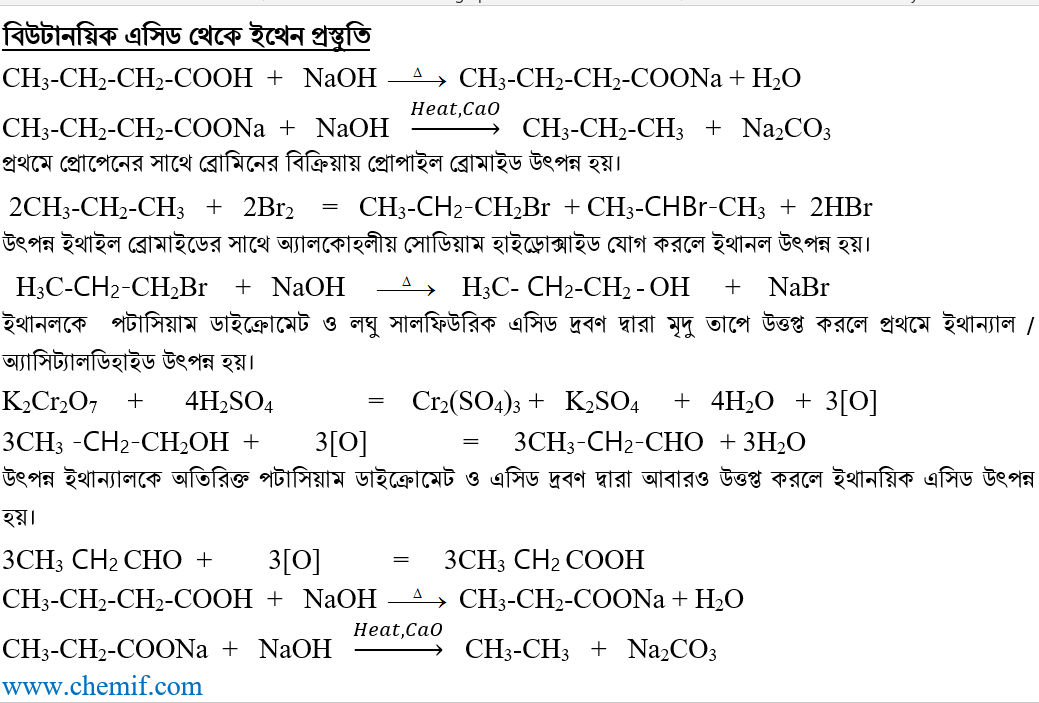 বিউটানয়িক এসিড থেকে ইথেন প্রস্তুতি/Preparation of Ethane from butanoic acid
